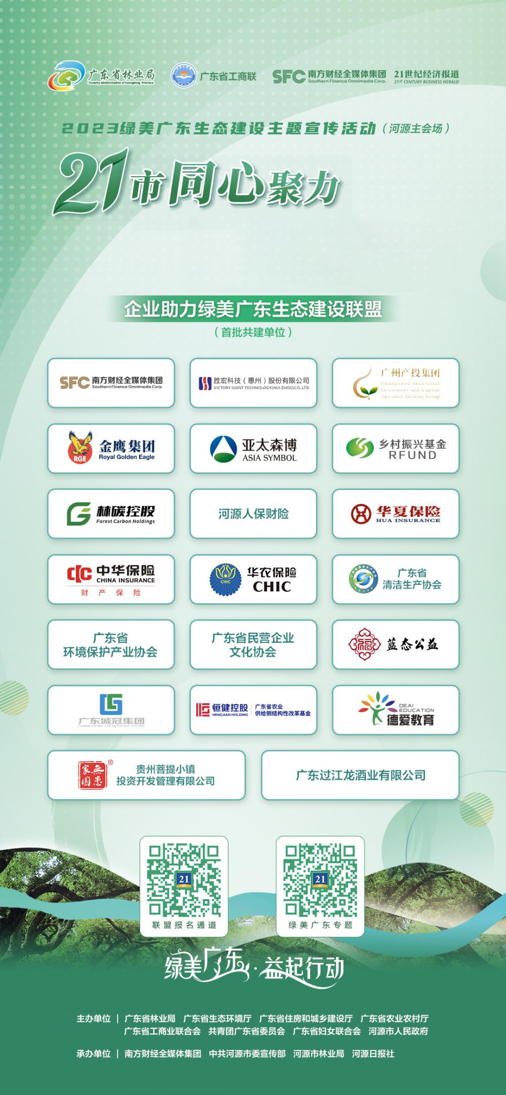 活动期间,由南方财经全媒体集团发起和组织的“企业助力绿美广东生态建设联盟”正式启动成立(以下简称“联盟”)。AG庄闲科技作为首批共建单位,与相关领导、其他金融机构、企业代表、媒体等共同参与启动仪式,并向社会各界发出号召,通过联盟平台,以多种方式积极投身“绿美广东”生态建设当中。
